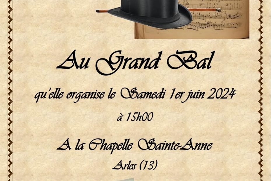 Nous avons le plaisir de vous annoncer que le Grand Bal, organisé par la Fédération Folklorique Méditerranéenne, se déroulera le Samedi 1 juin 2024 à… Lire la suite »Grand Bal en Arles